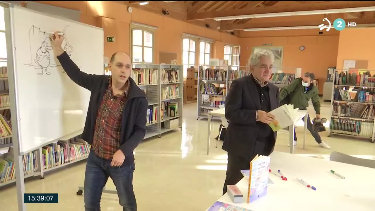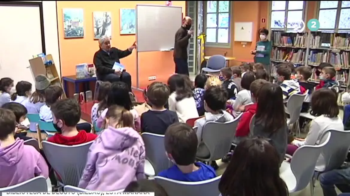 Bernardo Atxaga retoma la literatura infantil, y presenta su último libro ante niños y niñas de 8 años en la biblioteca de Deusto. 'Desioa' narra las aventuras de Ata pank y Ate punki, dos patos ingenuos y muy gamberros.