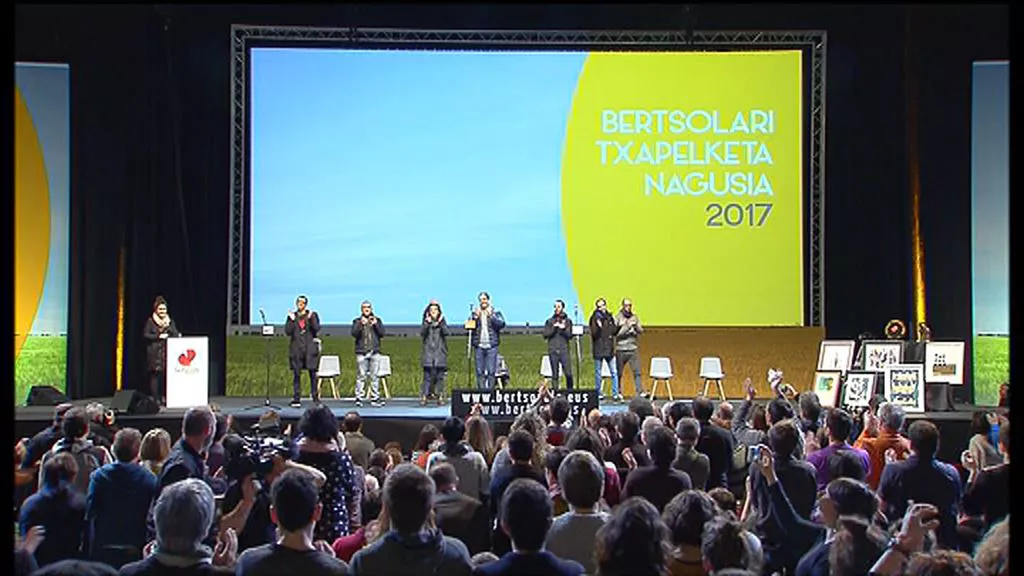Los bertsolaris son recibidos en pie y con una ovación cerrada