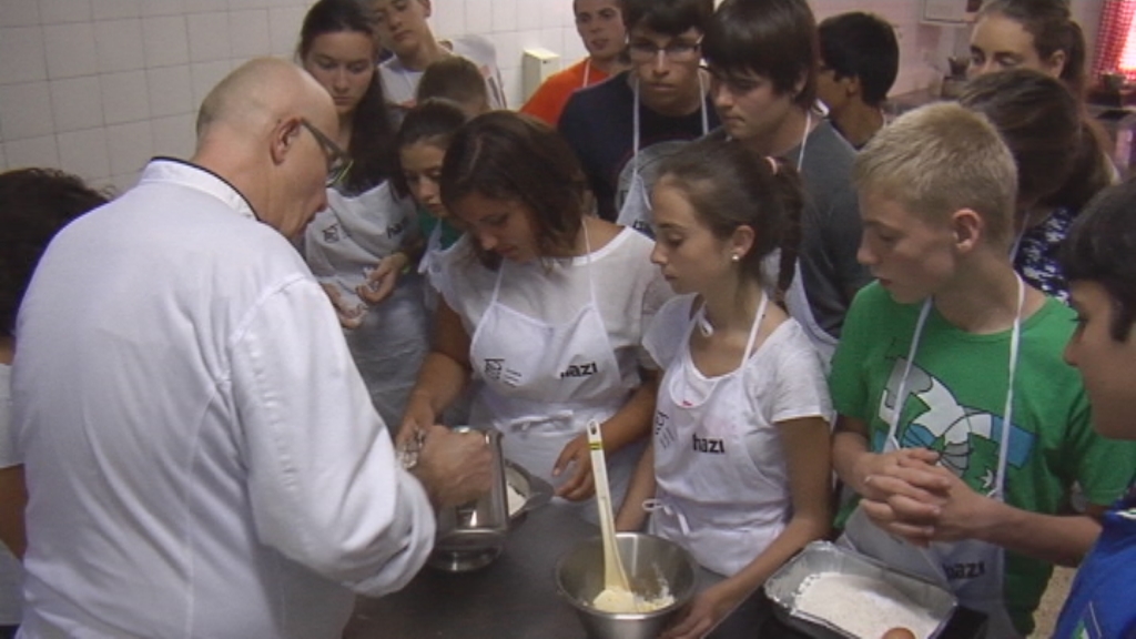 20 jóvenes de todo España conviven durante 10 días en Derio para aprender a cocinar con los mejores. El Basque Culinary Center organiza estos campamentos de verano para aprender divirtiéndose.