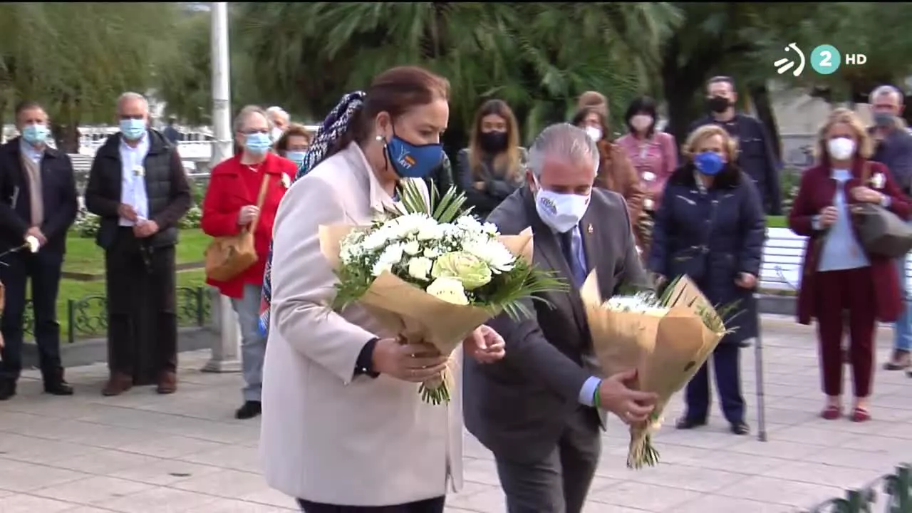 Ofrenda floral en homenaje a las víctimas del terrorismo en el monolito de Alderdi Eder