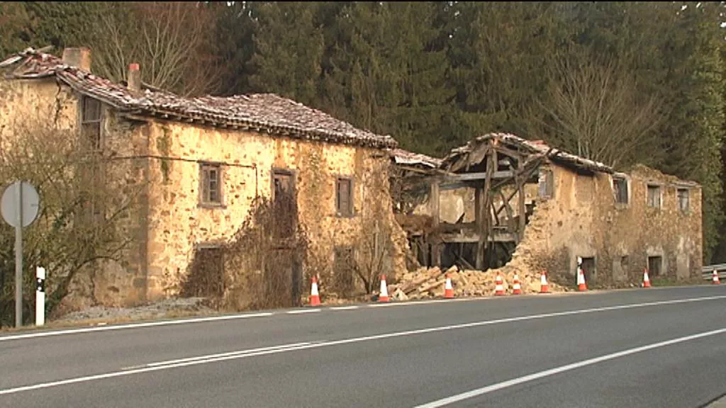 Una de las paredes de la casa, que estaba abandonada, ha caído sobre el turismo y ha afectado también al carril de la vía sentido Vitoria.