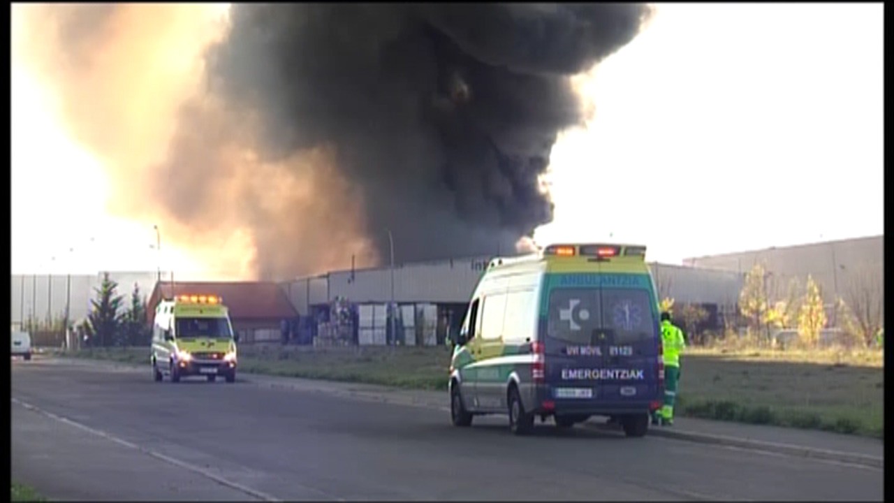 Incendio de grandes dimensiones en un polígono industrial de Araia