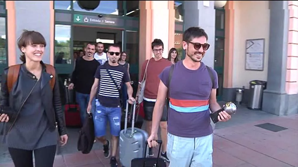 Llegan contentos a Pamplona con sus tres premios en la mano. Recuerdan la gala de anoche como una cosa que les costará olvidar. Una noche emocionante, recalcan.