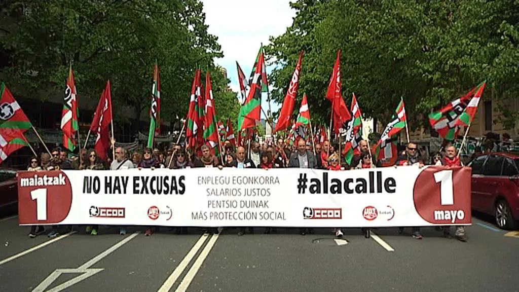 Los sindicatos y miles de ciudadanos se han movilizado en las calles de las cuatro capitales vascas para reclamar un salario digno y reivindicar los derechos de los trabajadores.