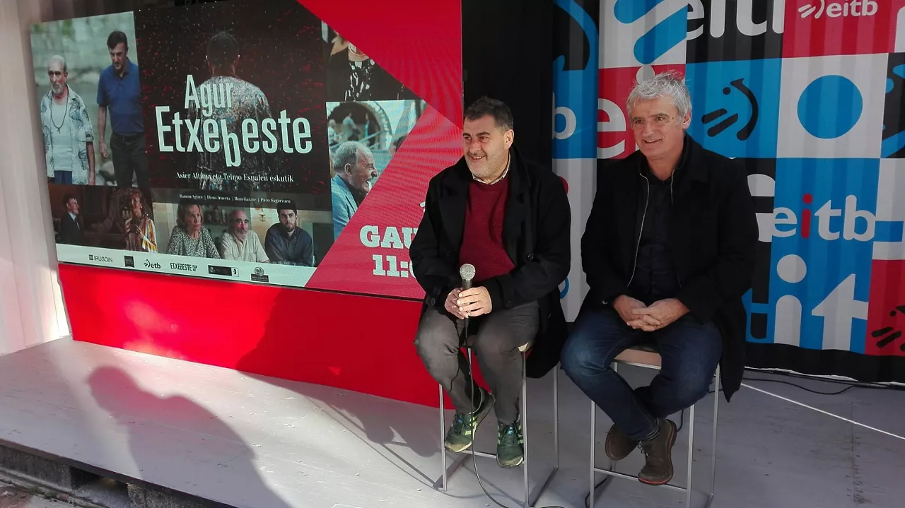 Los cineastas Asier Altuna y Telmo Esnal han visitado EiTB Gunea en la Feria de Durango, donde han dado algunas claves de la película que preparan, “Agur, Etxebeste”.