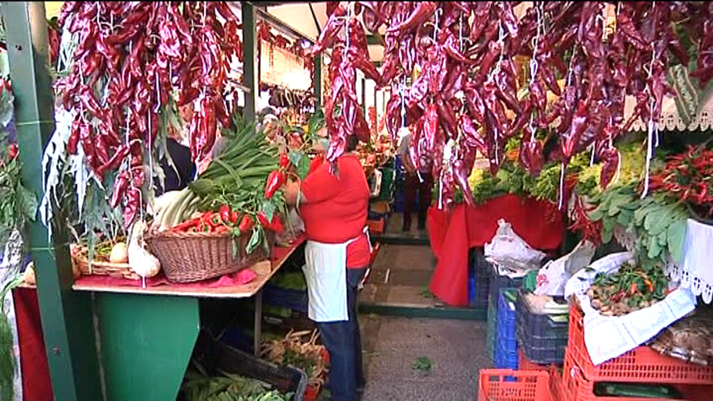 Con un tiempo inmejorable se celebra en Gernika la feria del último lunes de octubre. Impresionante exposición de frutas y verduras procedentes de la huerta vasca.