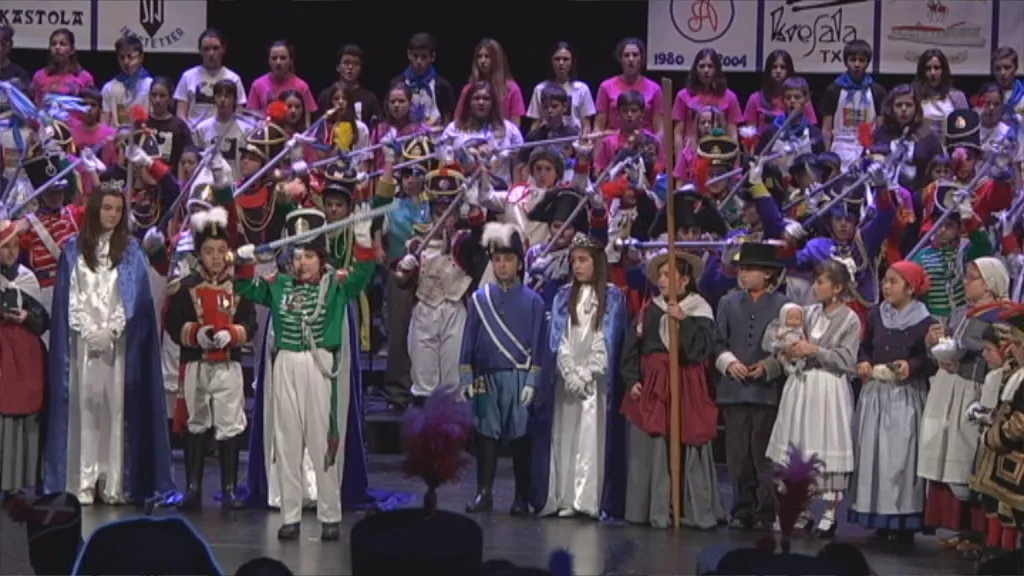 San Sebastián está ya sumida en el ambiente de las tamborradas previo a su gran fiesta del día San Sebastián. Este mediodia se ha presentado la Tamborrada infantil en el Victoria Eugenia.