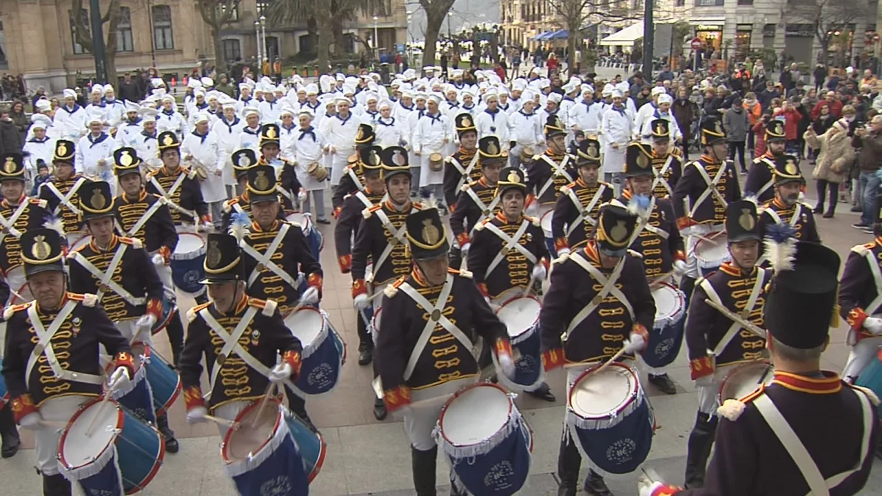 Donostia ya disfruta de su día con tamborradas que resuenan por toda la ciudad y desafían al frío. La izada de la bandera y la marcha de San Sebastián han dado comienzo a la fiesta.