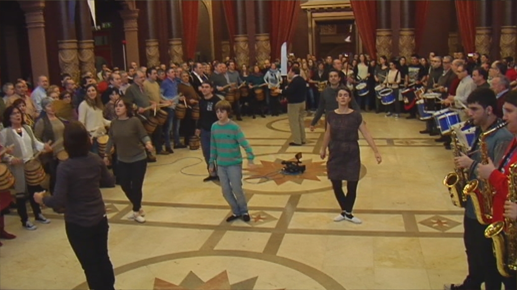 Previamente, un centenar de miembros de Koruko Ama Birginaren Eskola, así como unos 150 coralistas del Coro Easo han interpretado el 'Artillero' en los jardines de Alderdi Eder.