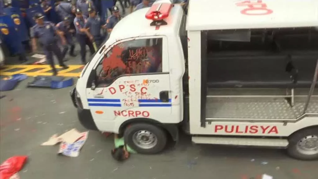Los manifestantes protestaban contra la presencia de tropas estadounidenses en Filipinas. La policía ha cargado con fuerza contra los manifestantes.
