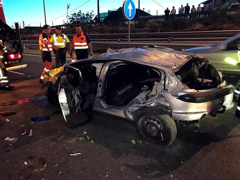 El vehículo en el que viajaban los fallecidos quedó destrozado tras salirse de la vía, chocar contra el guardarraíl, luego contra una columna y acabar atrapado en la mediana.