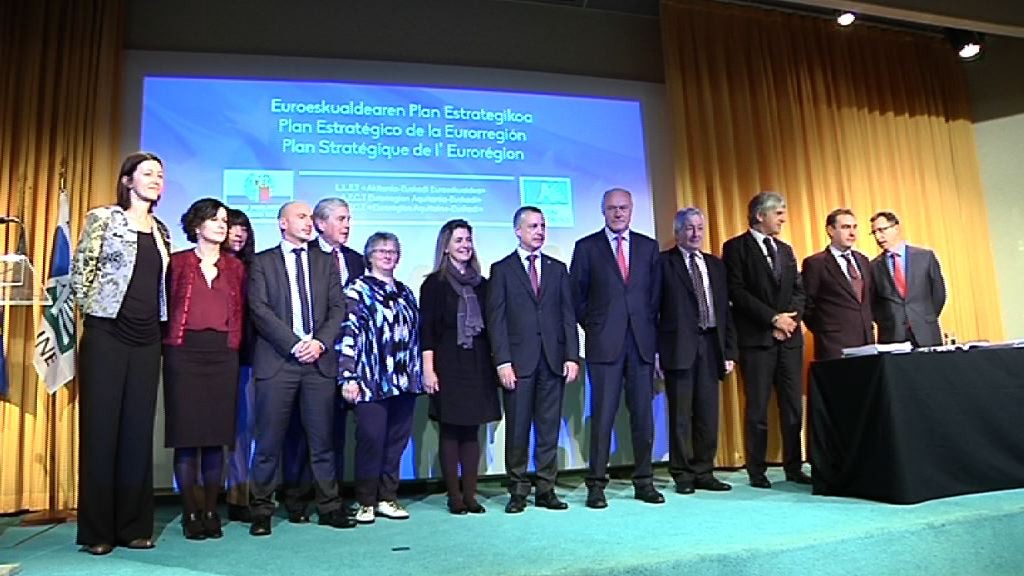 En Hendaia se ha presentado esta mañana el plan estratégico de la eurorregión Euskadi-Aquitania. Un plan en el que ambos gobiernos apuestan por fomentar el crecimiento económico inteligente.