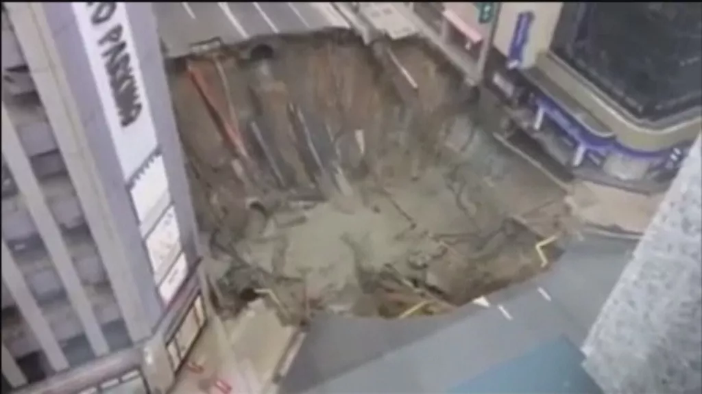 Enorme socavón en el centro de Fukuoka