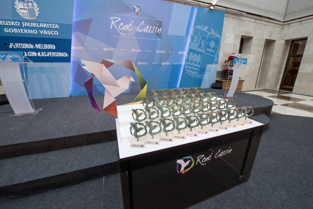 La Plataforma vasca para la querella contra los crímenes del franquismo, ha recibido este mediodía el premio René Cassin de manos del lehendakari Iñigo Urkullu.