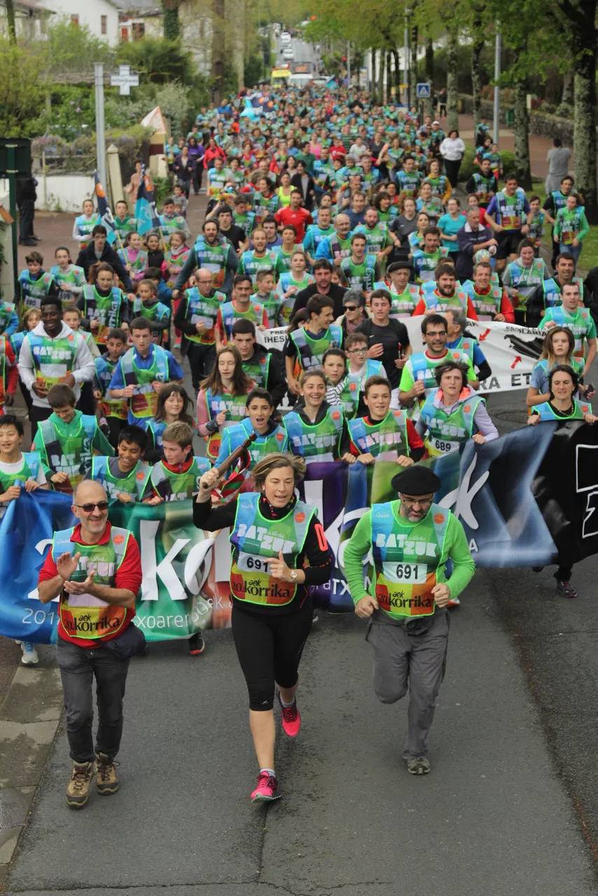 Decenas de euskalzales de ambos lados de la muga han participado en Baiona en la carrera a favor del euskera.