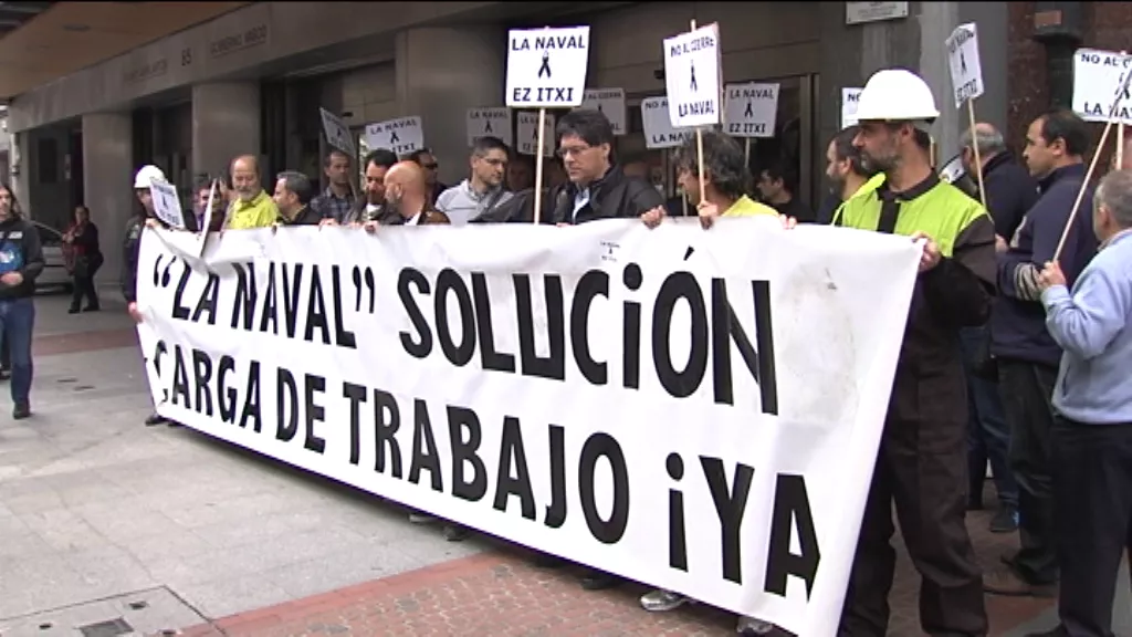 El comité de empresa de La Naval se ha concentrado ante la sede de la Delegación del Gobierno Vasco en Bilbao para reclamar carga de trabajo para el astillero.