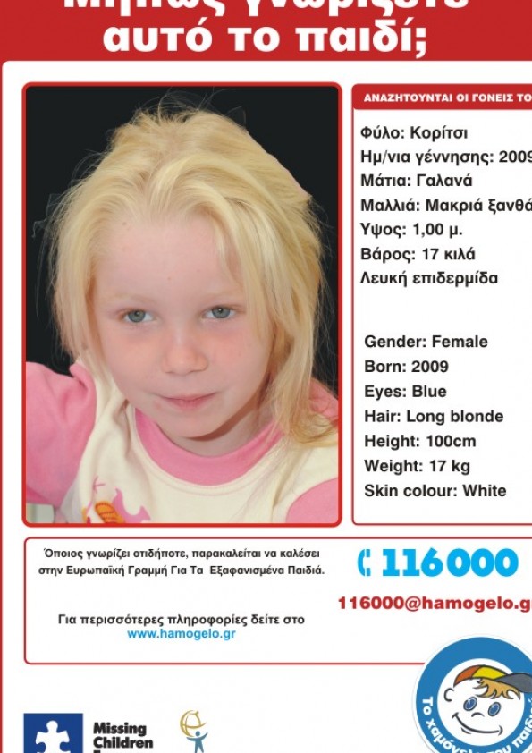 La pequeña, rubia y de ojos claros, fue descubierta en un campamento gitano el pasado jueves. Una prueba de ADN demostró que quienes se presentaron como sus progenitores no eran los padres genéticos.