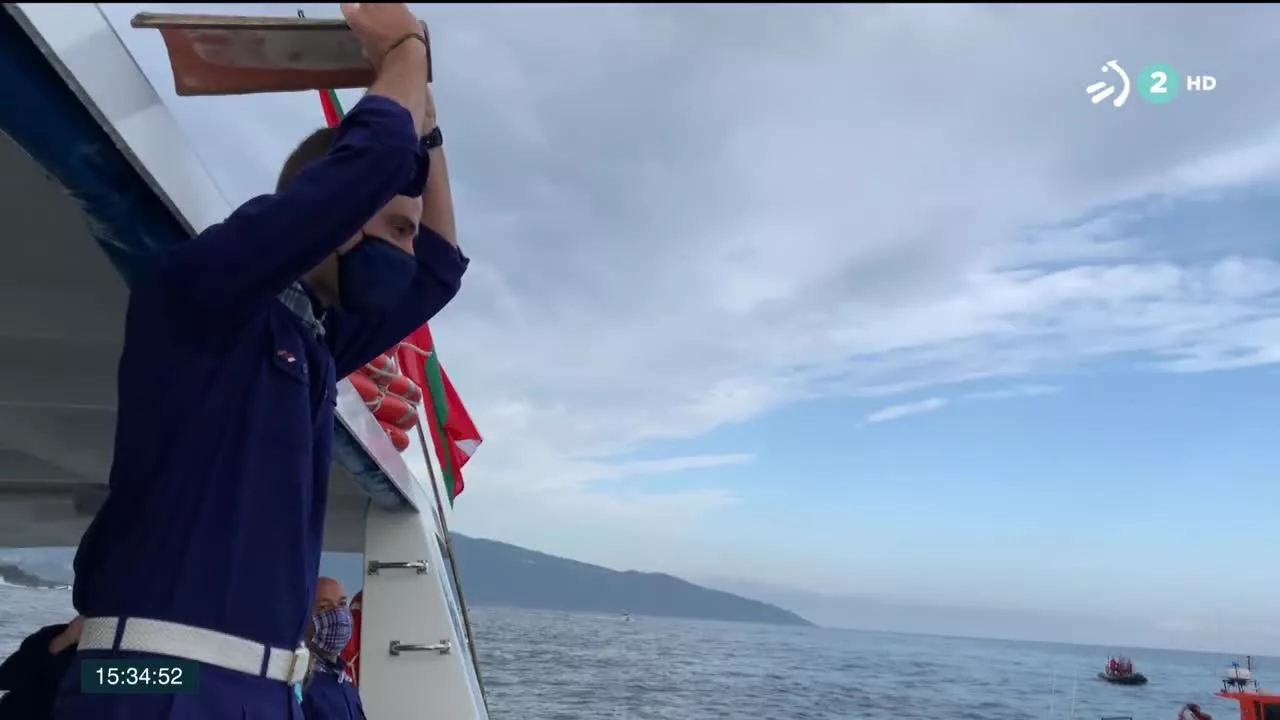 El alcalde de Bermeo lanza la teja a la isla de Izaro en las Magdalenas más atípicas
