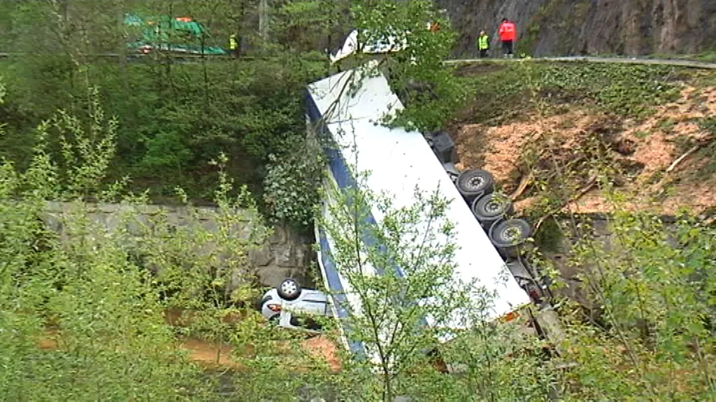 Un camión y un coche han sufrido un espectacular accidente esta mañana en Alegia (Gipuzkoa). Ambos han caído al cauce del río.