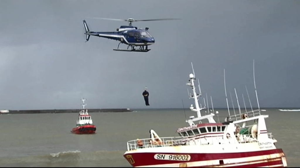 El pesquero ha encallado a causa de la fuerte pleamar. Un helicóptero ha tenido que rescatar a sus seis tripulantes. Todos se encuentran bien.