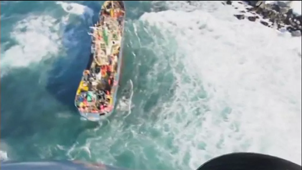 Espectacular rescate de los marineros del barco accidentado en Ziburu