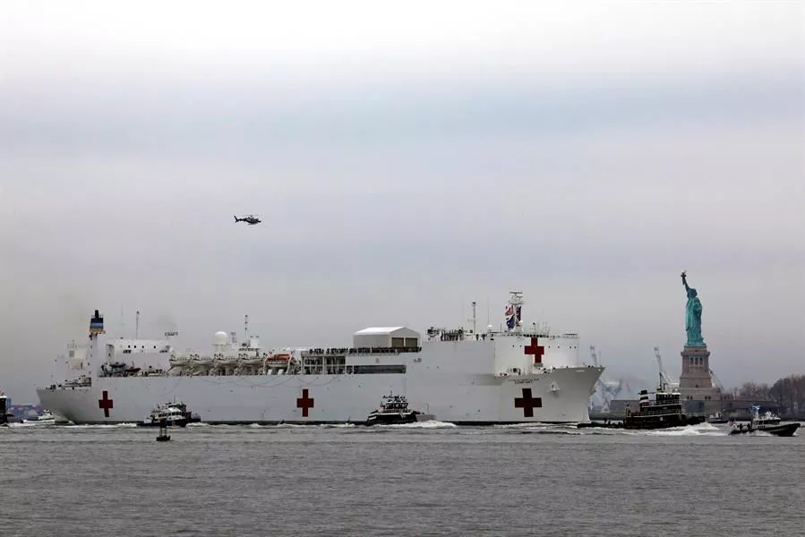 El buque de la Marina estadounidense cuenta con 1.000 camas hospitalarias que serán un desahogo para el sistema sanitario de la ciudad.