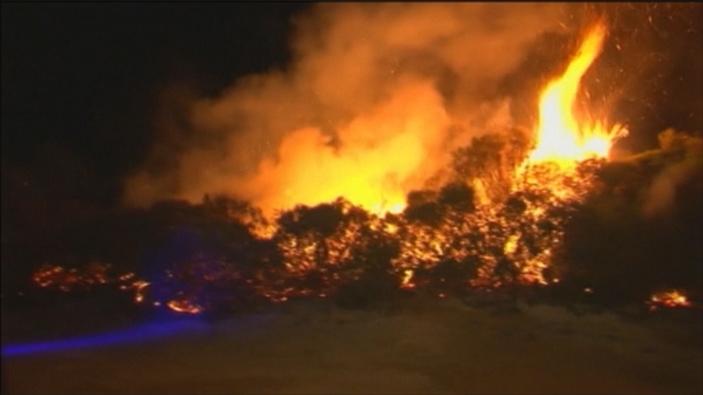 Más de 100 bomberos trabajan en la extinción del incendio, que amenaza con arrasar la localidad de Blue Mountain. Los incendios no son usuales en invierno, pero no ha llovido en los últimos meses.