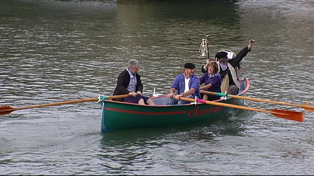 El legendario carbonero llegó ayer a la cpital vizcaína, montado en su gran ‘Pottoka’ de madera.