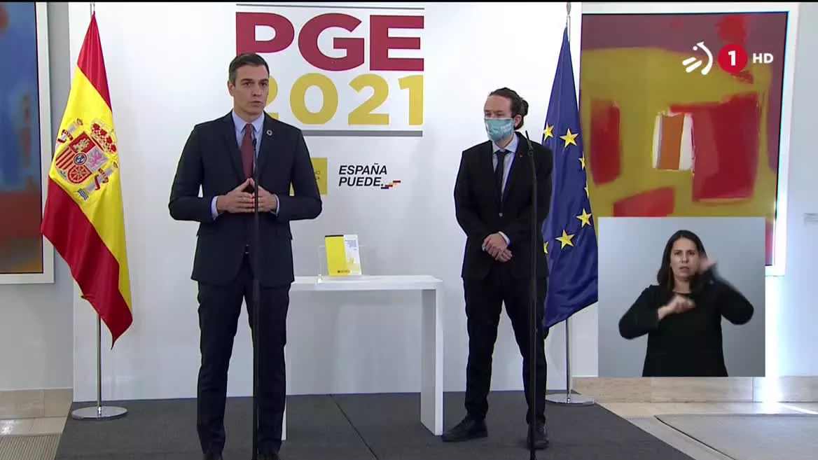 Pedro Sánchez y Pablo Iglesias han presentado los detalles del borrador de las cuentas del próximo año. Entre otras cosas, las pensiones subirán el 0,9 % y las no contributivas un 1,8 %.