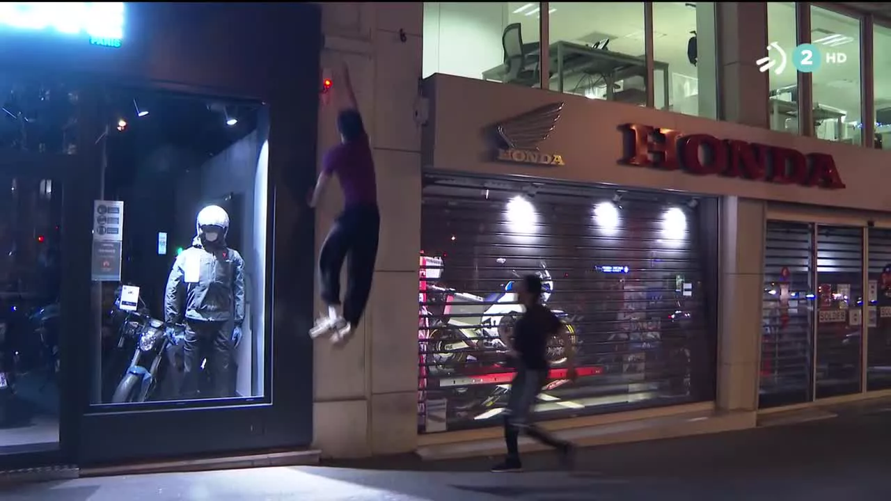 La ley dice que los escaparates deben estar apagados de 1 a 6 de la mañana, pero pocos comercios lo cumplen y unos jóvenes han decidido que se encargan ellos de apagar las luces a través del parkour.
