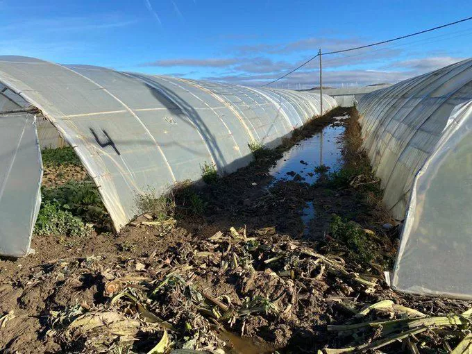 La consejera de Desarrollo Rural y Medioambiente, Itziar Gómez, ha visitado las localidades de Peralta, Funes y Falces para comprobar in situ los destrozos en infraestructuras agrarias. Hay unas 12 000 hectáreas de superficie afectadas, según las primeras estimaciones.