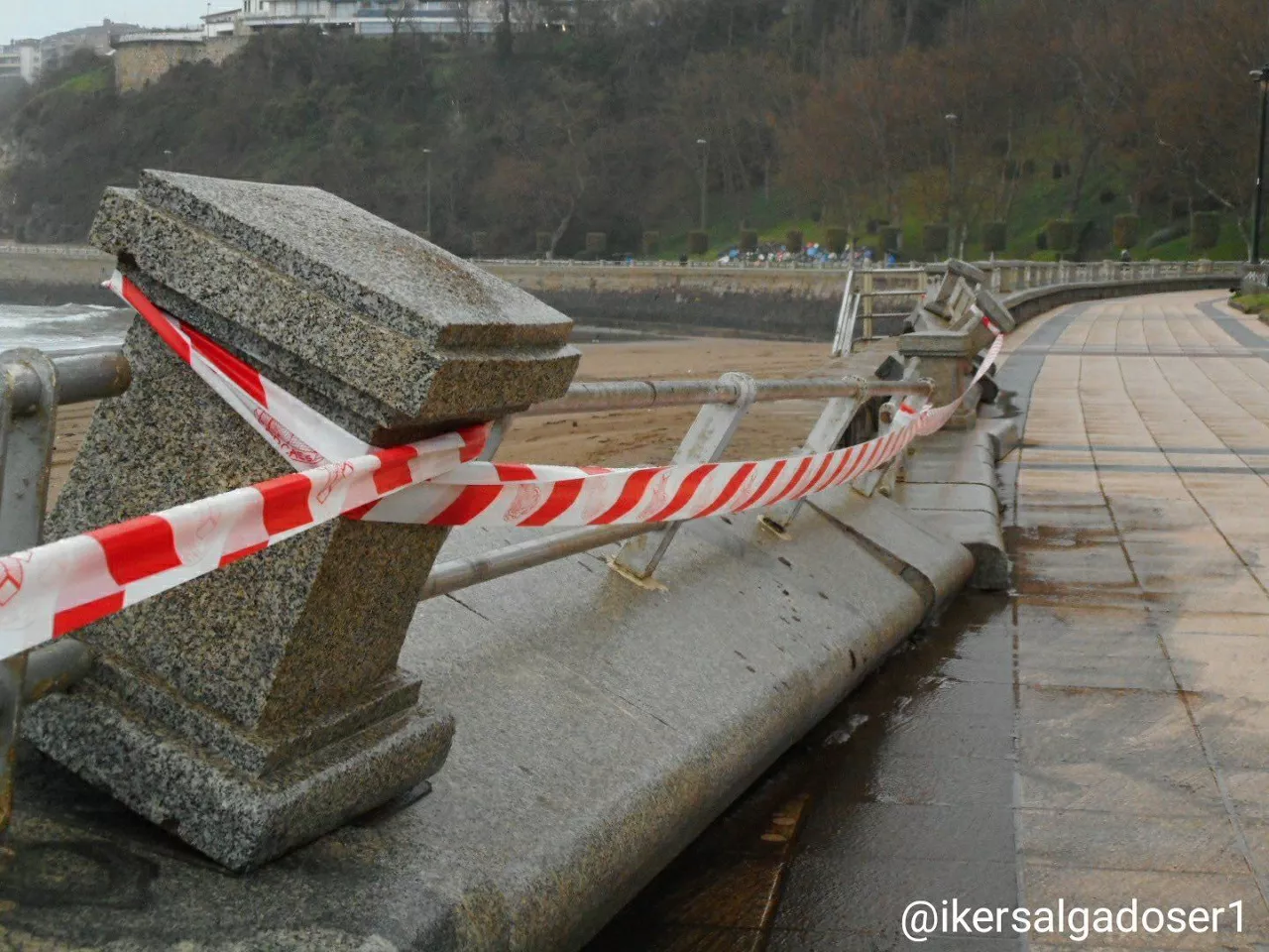 El fuerte oleaje de las últimas horas ha roto parte del muro en el paseo de Ereaga, a la altura del restaurante La Ola. Los operarios del Ayuntamiento de Getxo ya han limpiado la zona.