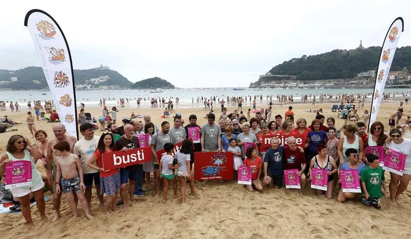 La iniciativa 'Busti zaitez/Mójate por la esclerosis múltiple' se ha llevado a cabo en 80 playas y piscinas del País Vasco, y ha celebrado su acto central en la playa de La Concha.