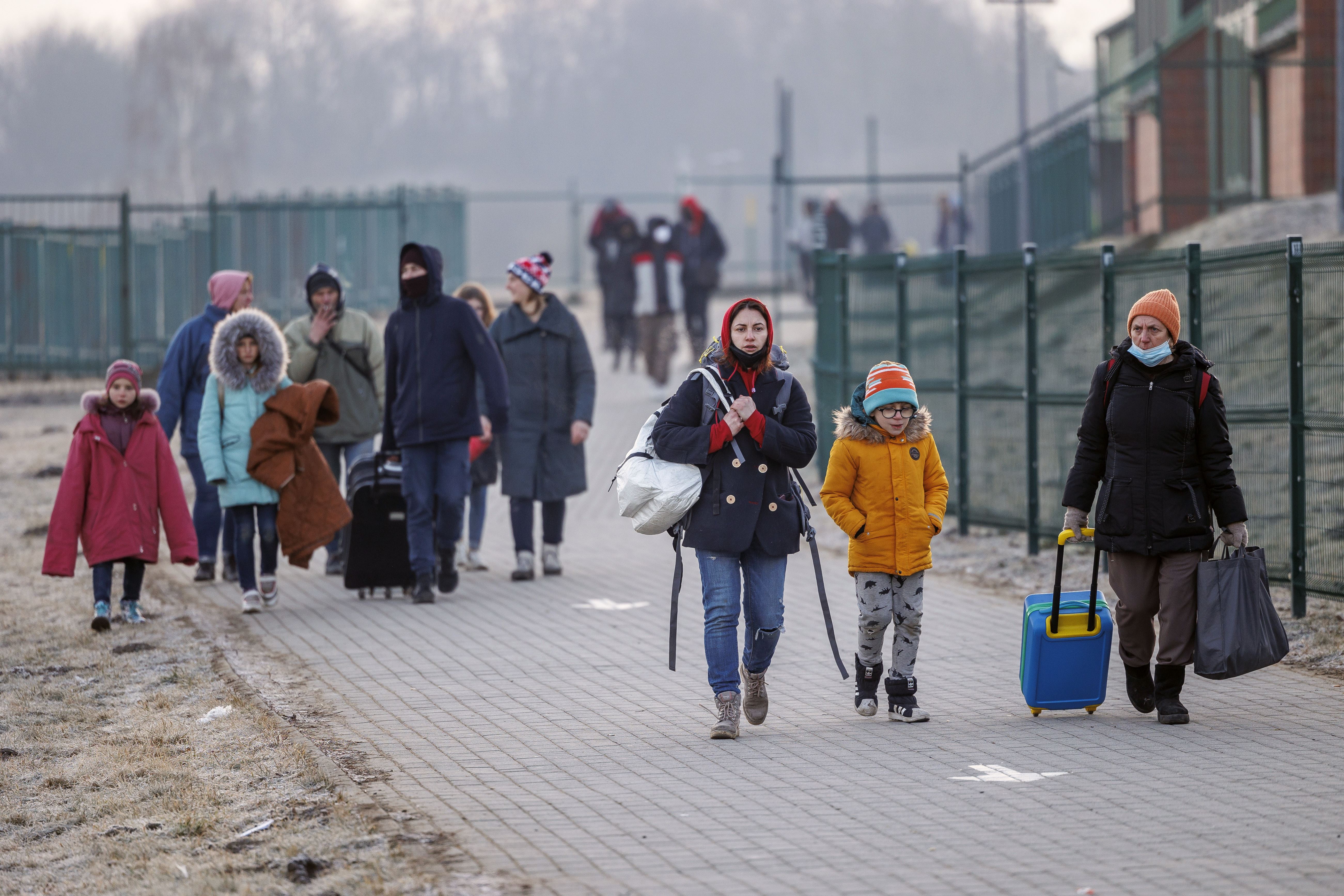 Miles de personas cruzan la frontera polaca en busca de un lugar seguro, la mayoría son mujeres y niños