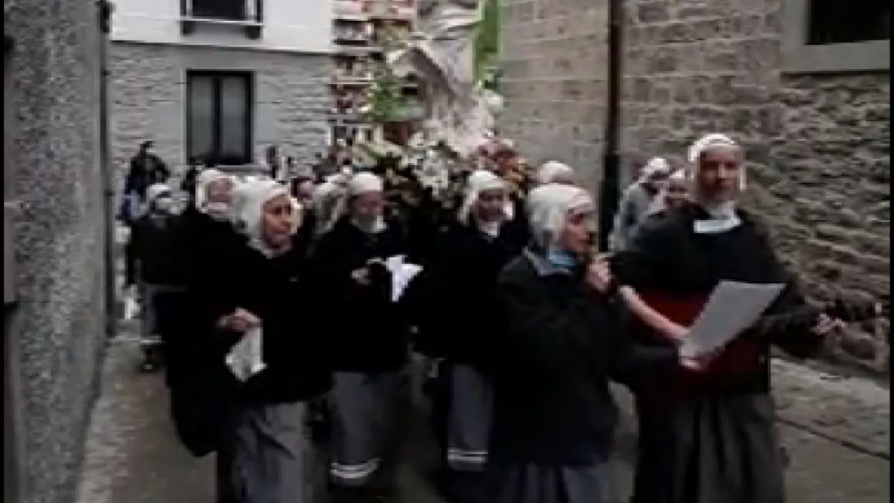 Las monjas del convento de la Santísima Trinidad han salido con la imagen de la virgen por las calles de Bergara en procesión, con poca distancia y pocas mascarillas.