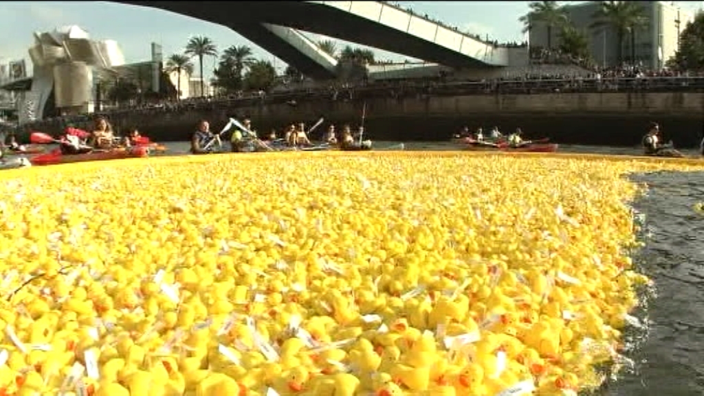 30.000 patos surcaron la ría de Bilbao. El dinero recaudado se va a destinar a la investigación de enfermedades neurodegenerativas.