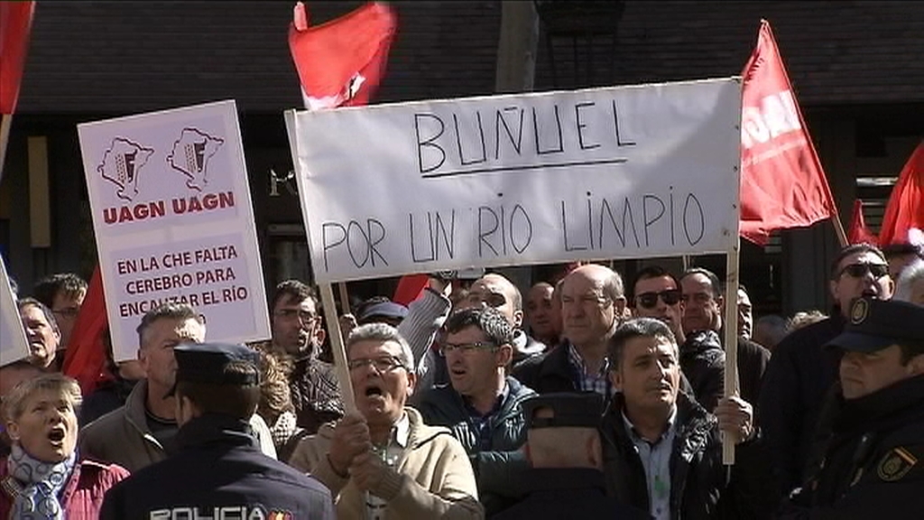 Los agricultores navarros han salido a la calle para exigir indemnizaciones urgentes para las personas afectadas por las inundaciones. Han protestado frente a la Confederación Hidrográfica del Ebro.