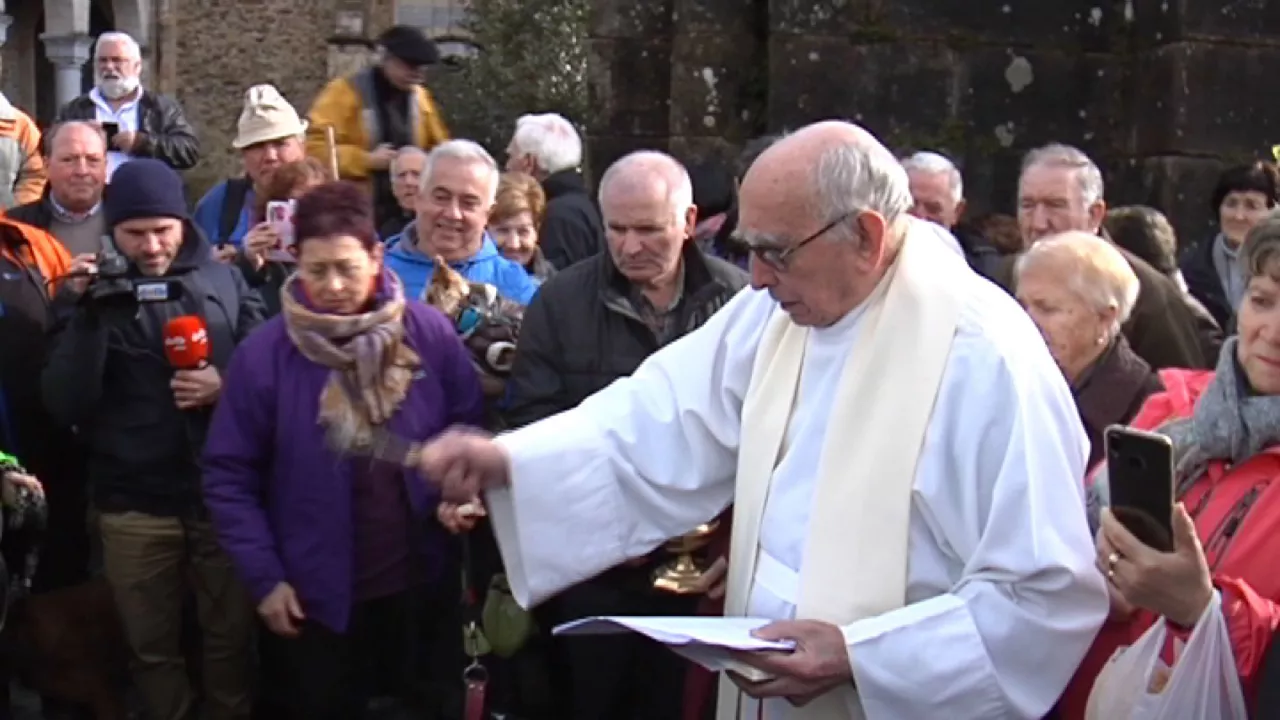 12 perros reciben la bendición de San Antón en Urkiola, Abadiño