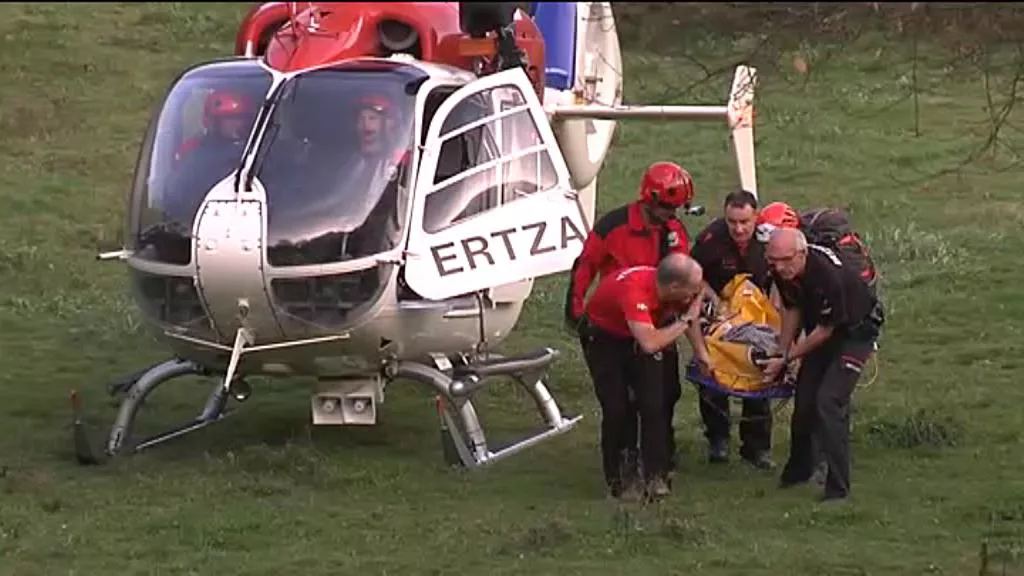 Se trata de un vecino de Barakaldo de 41 años que ha sufrido una caída cuando practicaba senderismo en el collado de Larrano. Ha sido trasladado al Hospital de Galdakao (Imágenes de @ertzaintzaEJGV).