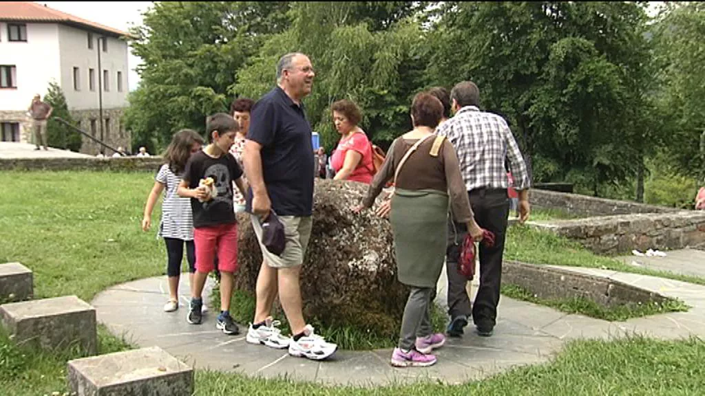 Mucha gente en las misas en el santuario. Y mucha más fuera de él. Algunas, como no, dando vueltas alrededor de la piedra, para encontrar pareja o preservar la que ya tienen.