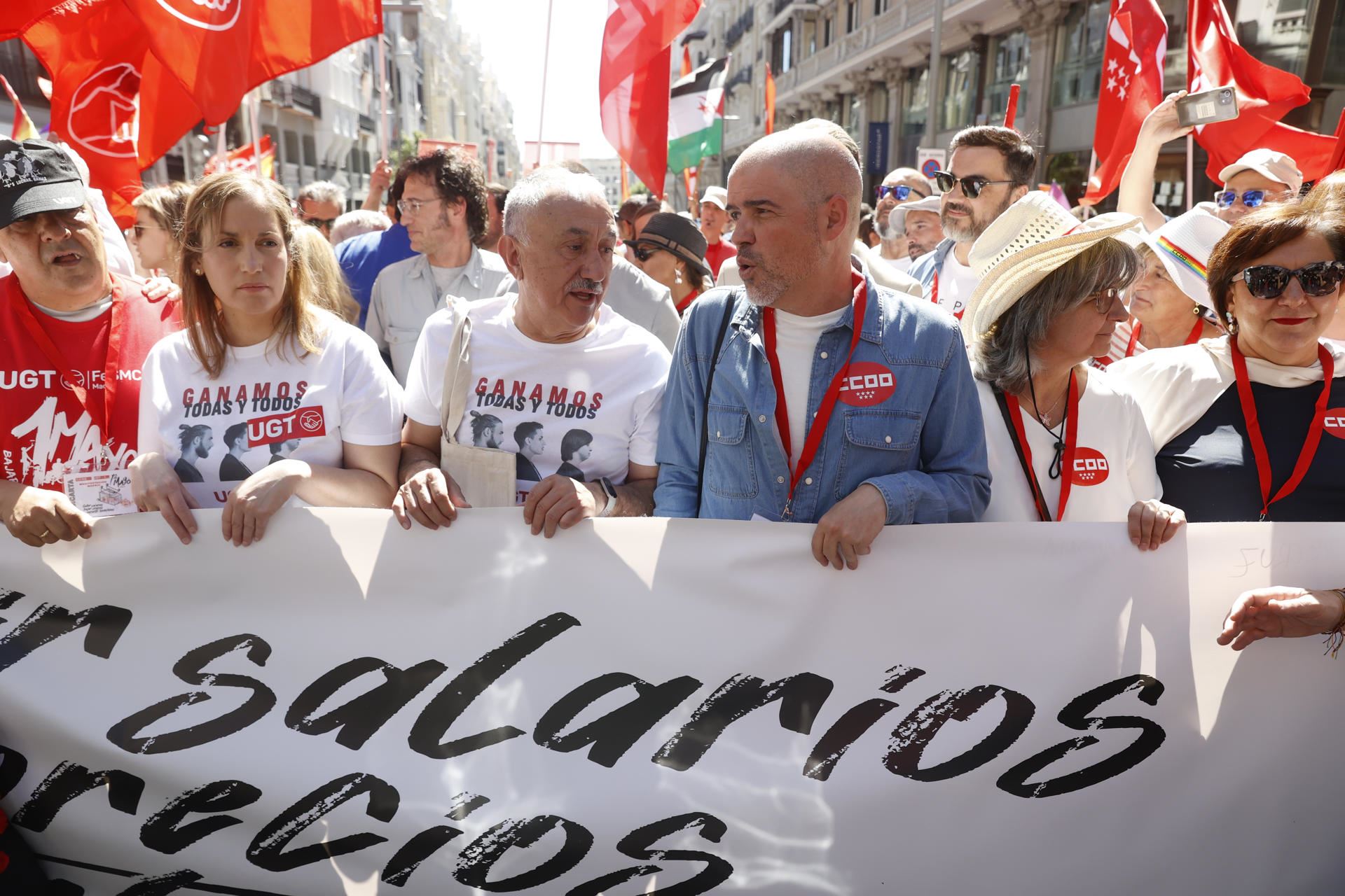 Los secretarios generales de las centrales sindicales, Unai Sordo y Pepe Álvarez, emplazan a los empresarios a una negociación para acordar una subida de salarios.