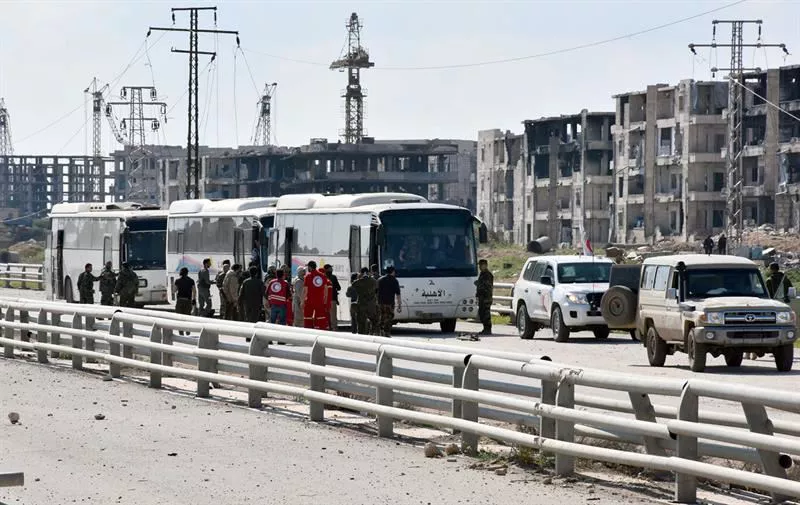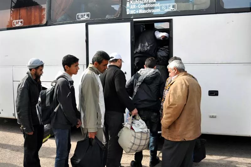 Miles de civiles y combatientes evacuados de poblaciones sitiadas en Siria