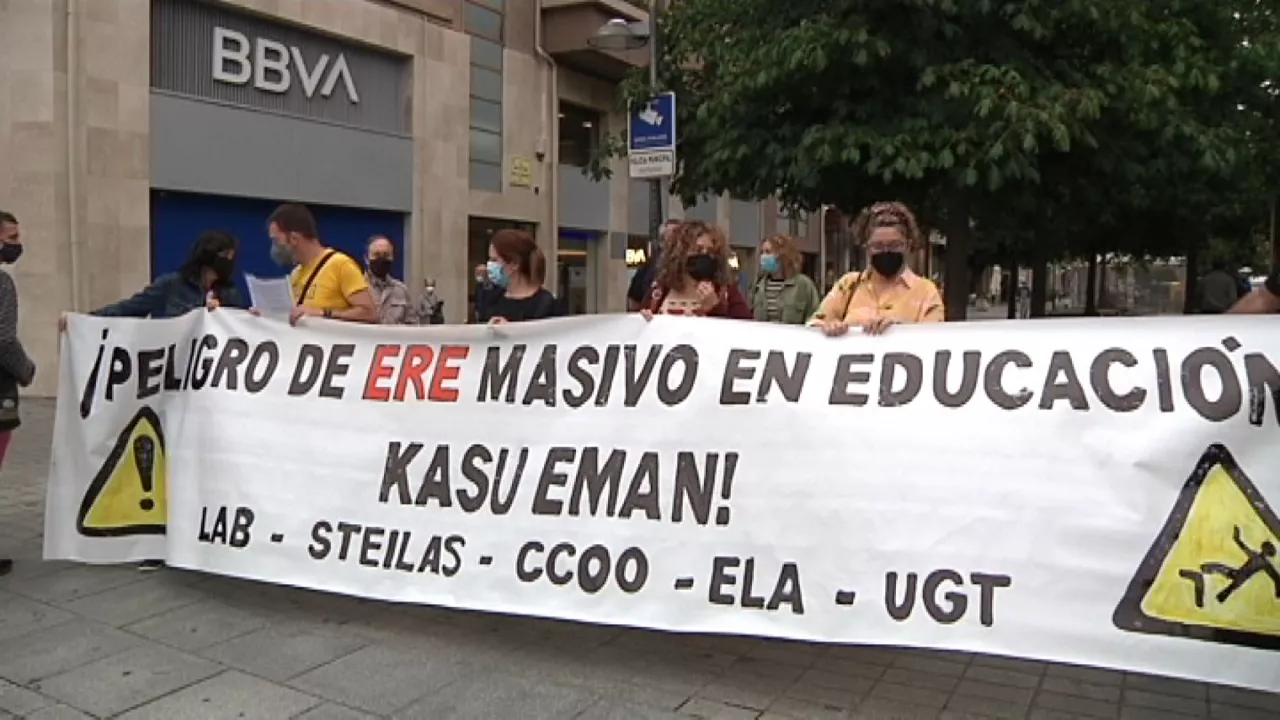 Los sindicatos de Educación de Navarra se han concentrado en contra de los posibles cambios de las OPE, que exigiría un nivel C1 de inglés, lo que llevaría a un "ERE masivo".