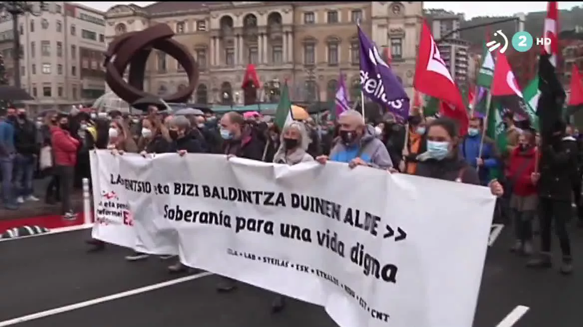 Sindicatos y agentes sociales se han manifestado esta mañana en Bilbao, Donostia-San Sebastián, Vitoria-Gasteiz y Pamplona por unas condiciones laborales, de pensiones y de vida "dignas".