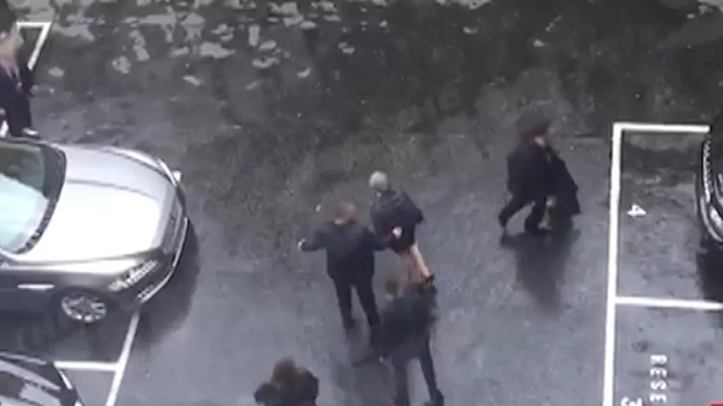 Son imágenes grabadas en un patio interior del Parlamento. Se puede ver el nerviosismo del servicio de seguridad por poner a salvo a la primera ministra.