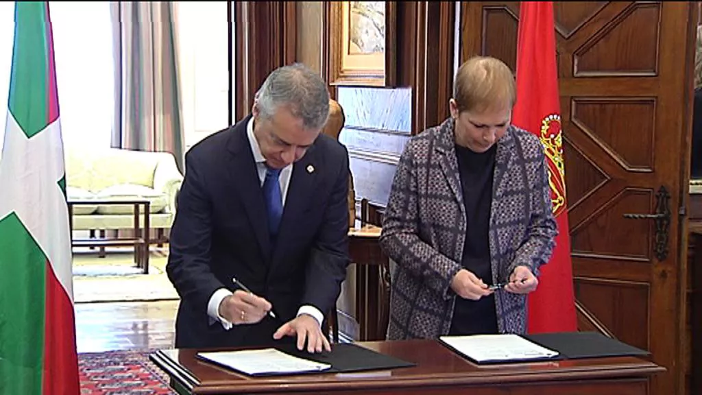 Iñigo Urkullu y Uxue Barkos suscriben el acuerdo de colaboración