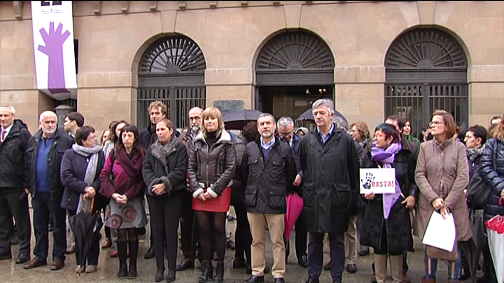 El gobierno navarro, con Uxue Barkos a la cabeza, ha participado en la concentración contra la violencia de género. También han asistido miembros de otros partidos.