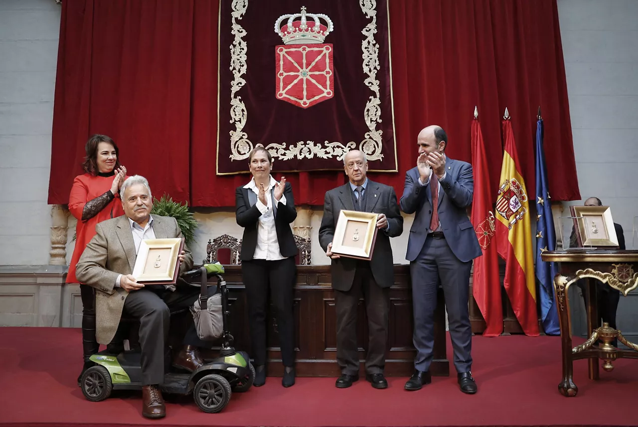 La presidenta de Navarra, Uxue Barkos, ha entregado la medalla de Oro a título póstumo a los artífices de la bandera de la Comunidad: Arturo Campión, Hermilio de Olóriz y Julio Altadill.