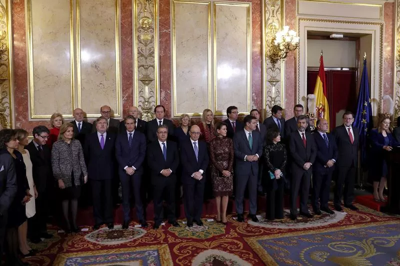 Saénz de Santamaría y Puigdemont, juntos en la jura de Urkullu