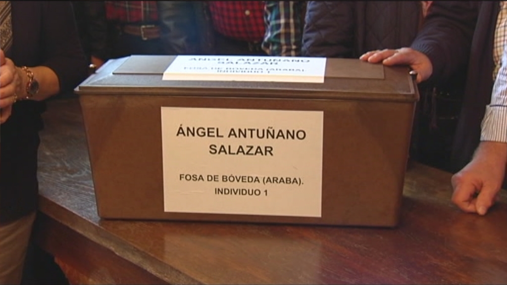 Los restos de Ángel Antuñado, fusilado en la Guerra Civil por militares franquistas, han sido entregados a su familia en el ayuntamiento de Valdegovía. Han ido hallados por Aranzadi en septiembre.